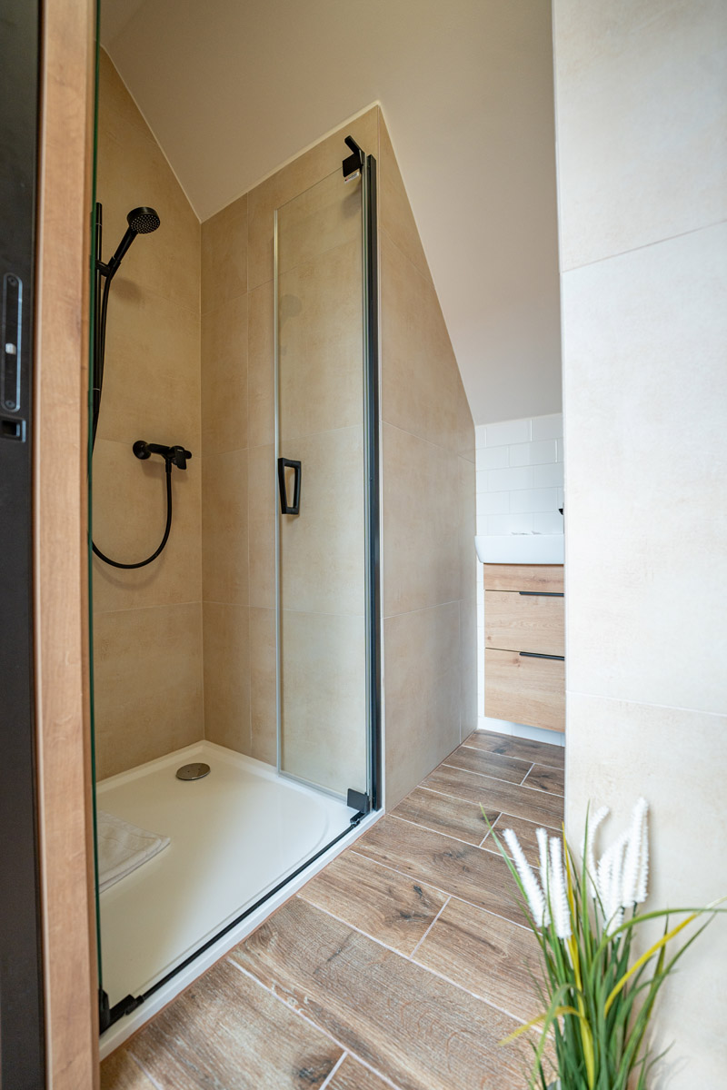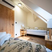Apartmán číslo čtyři je vhodný pro 6 osob. Nabízí dvě samostatné ložnice s dvojlůžkem, dvěmi samostatnými postelemi a možností přistýlky na rozkládací sedačce až pro dvě osoby. Je vybaven kuchyňským koutem s dřezem, varnou deskou, rychlovarnou konvicí a mikrovlnnou troubou. Kuchyně obsahuje vše potřebné pro pohodlné vaření. Apartmán dále disponuje klimatizací, televizí a Wi-Fi. Součástí je také vlastní koupelna se sprchovým koutem, WC, umyvadlem a fénem.